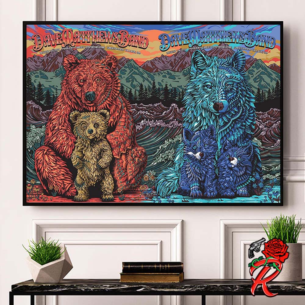 Reverholic: About Dave Matthews Band Concert Poster For Greenwood Village Colorado Full Show Combined Poster At Fiddler's Green Amphitheatre On August 23 And 24 2024 The Bear And The Wolf Artwork Decor Poster Canvas Introduction