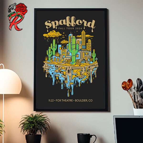 Celebrate an unforgettable night of live music with the Spafford Three Nights of Colorado Fall Tour 2024 Poster, featuring their November 22, 2024, performance at the iconic Fox Theatre in Boulder, Colorado. Perfect for fans of the jam band phenomenon, this poster captures the essence of Spafford’s electrifying stage presence and the spirit of their highly anticipated fall tour.